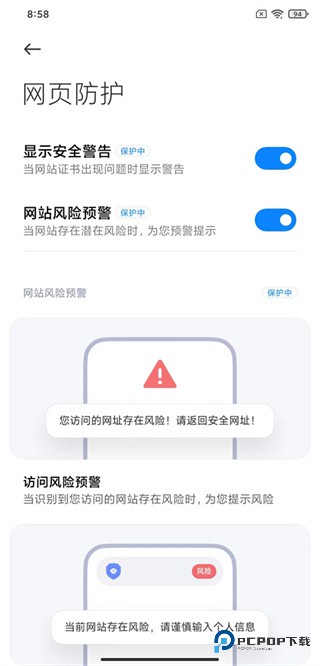 注:黄色弹窗提示为防护功能提醒,日常浏览建议保持开启状态更安全