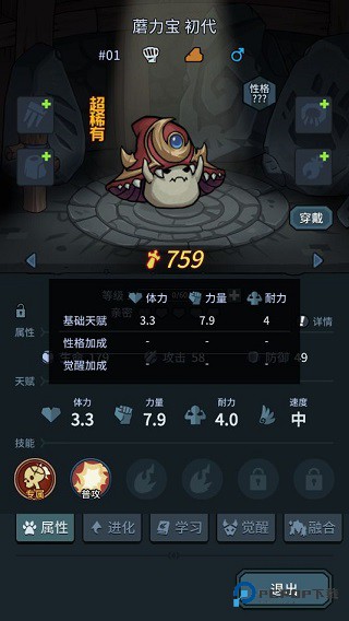 消耗对应属性「精华 + 巨心」,每次进化解锁新形态 + 全属性强化