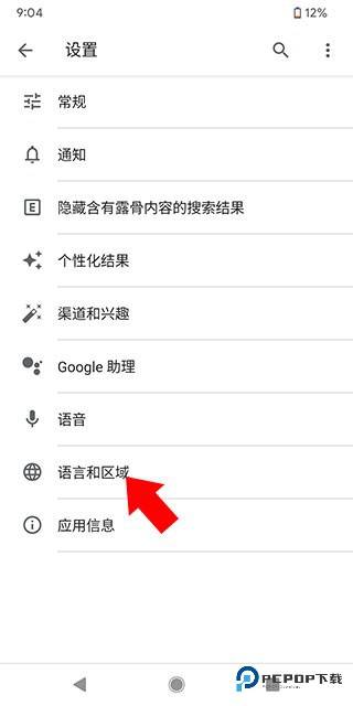 3、进入设置界面后,点击下方的语言和区域选项