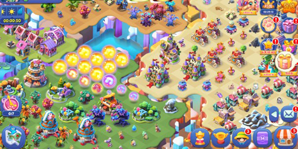 游戏内有600多种元素可供合成消除,并且利用探索值不断唤醒小精灵,而且还可以收集图纸,改造现有建筑,之后通过元素的合成与收集,建造属于自己的梦幻小岛。