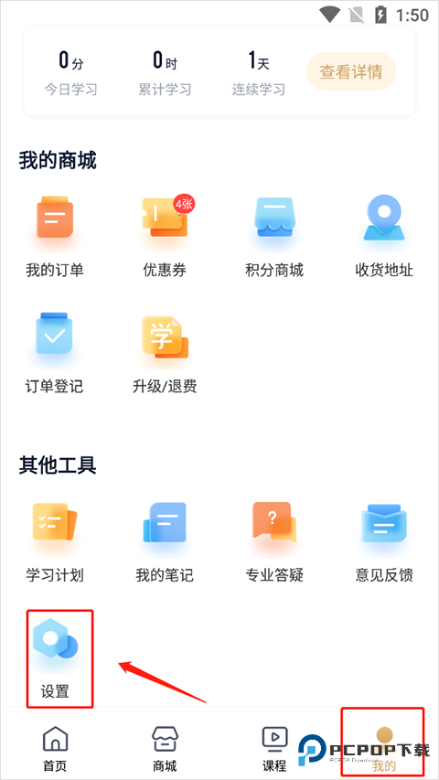 1、打开众合法考 app 后,先进入 “我的” 选项卡,再点一下 “设置” 就跳转到设置页面了,操作起来很顺畅哦。