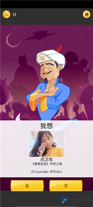 2、睿智的灯神精灵 Akinator 闪亮登场,抛出一连串 “点头 Yes 摇头 No,不知道就摇头晃脑” 的趣味选择题,通过你的答案一步步锁定目标范围。