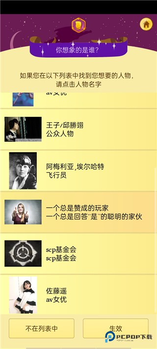 2、游戏启动后,先想好你打算考倒灯神的那位人物(不管现实中还是你脑海里塑造的角色都可以)。
