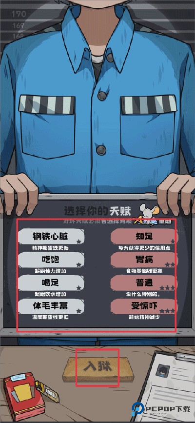 3、满好感时典狱长会找你谈话,务必选 “答应” 选项!这样即使第 100 天没攒够卡,他也能保释你出狱(前提是活到百日)。
