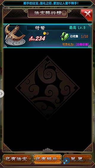 二、进了万灵榜,就能看到你收集到的各种法宝碎片。