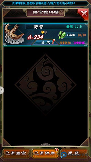 三、当某个法宝的碎片数量凑齐了,系统会明明白白提示你 “可合成”。