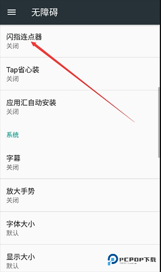 2、然后在无障碍里面,找到闪指连点器,然后开启;