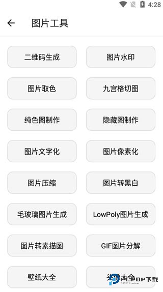 做宣传海报扫个码?用二维码生成器;加水印、取色板配颜色、九宫格分割朋友圈美照、纯色背景自己定制;还能把图片变得像素风;分解 GIF 文件当表情;自带壁纸库和头像包供你随时更换装饰手机。