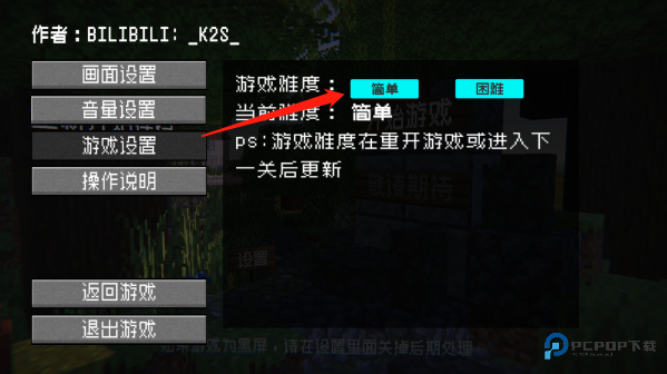 1、初次进入游戏,我们可进入“游戏设置”自定义游戏的难度,将其切换为简单后可以更加容易入门