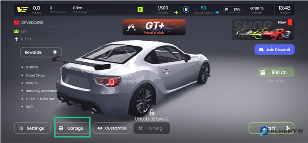 1、打开极速赛道汉化版手游,点击右下角开始;