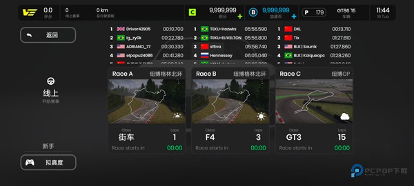 5、多种赛事模式:经典赛,淘汰赛,一对一,试驾。