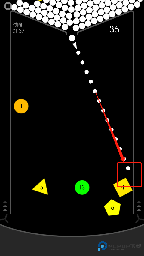 3、点击弹球,点击游戏屏幕上方的弹球可以让它释放下来,看着他的不同方向。