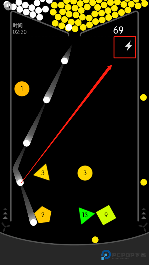 闲弹球速度太慢的时候可以点右上角的这个闪电图标,即能给球加速。提高游戏效率。