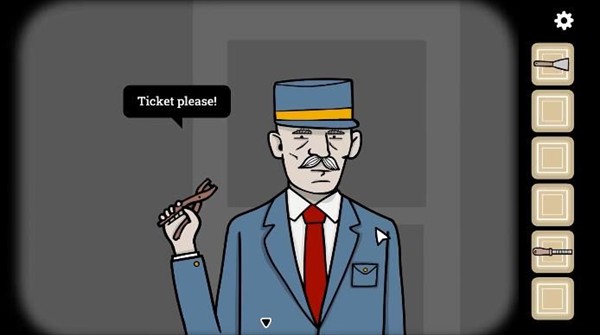 1、点击列车员,会提示我们需要车票。点击列车员右边的口袋,可以获得一枚硬币