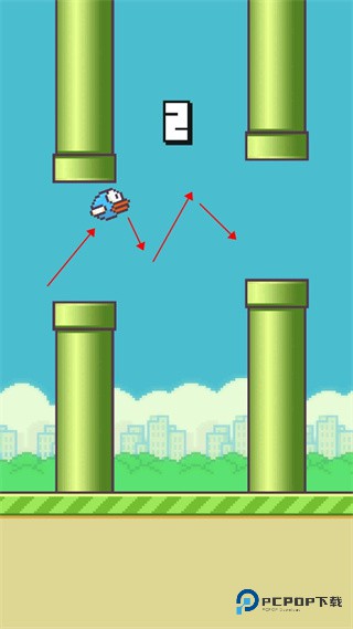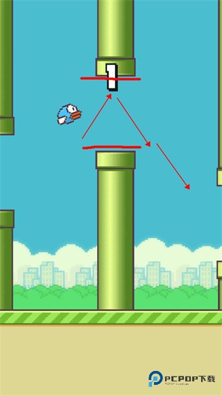 小鸟的跳跃是个锯齿状,靠点击屏幕来获得上飞的力量。你知道路线是锯齿状的,那么你对小鸟的下一步就有了预期和判断,这样就不至于掉在地上或者是撞向柱子。要想过更多关卡,就必须在上下柱子之间起跳,起跳是需要与下面柱子隔一定距离。