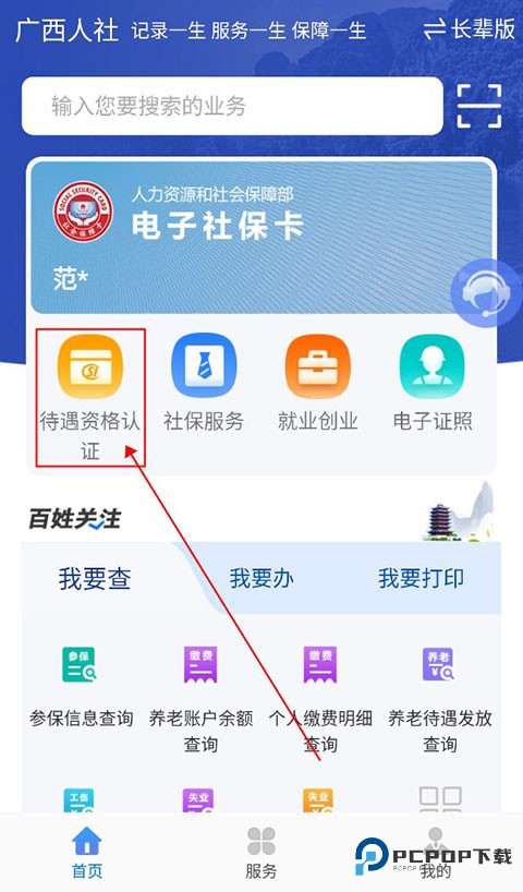用户在本站下载并打开软件后,需要先登录注册自己的账号,然后到首页点击电子社保卡下方的“待遇资格认证”。