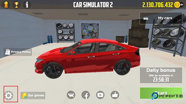 1、进入汽车模拟器2游戏后,点击左下角的齿轮图标;