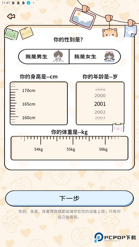 1、首先,在这里输入你现阶段的身高、年龄以及体重信息。