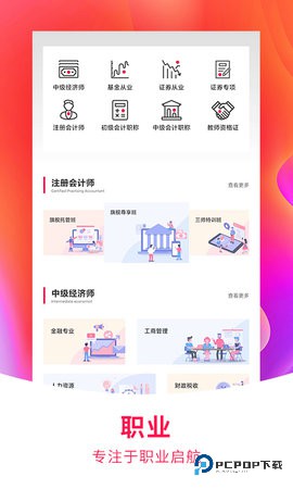 2、职上专注于金融和会计类考试的在线培训,涵盖证券、基金、初级会计、注册会计等多个领域,提供高品质的课程和配套学习资料。