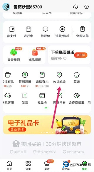 1、打开小象超市app,点击右下角【我的】,然后点击【收货地址】