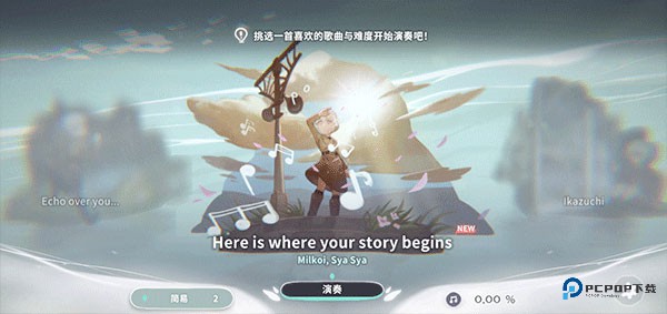 3、每完成一个故事章节就可以解锁一个新的歌曲,左下角是难度提示,点击演奏。