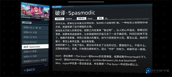 其实在剧情文件中也提示了痉挛的解锁方法(如下图底部的“hint”)
