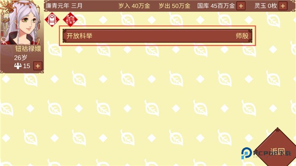 9、每三年吏部将在四月份从全国通过科举选拔出三十名举子入仕,每年岁出增加16641金,然后点击审议;