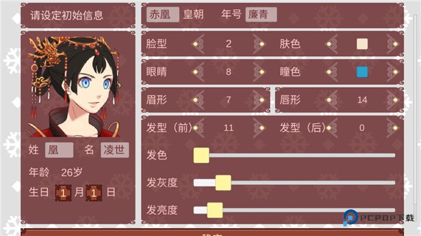 2、这里可以设定初始信息,如姓名,年龄、还可以自定义脸型、眼睛、眉形等;