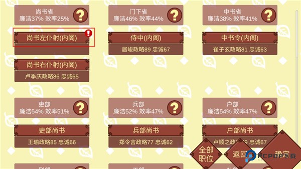 5、其次选择尚书左仆射(内阁);