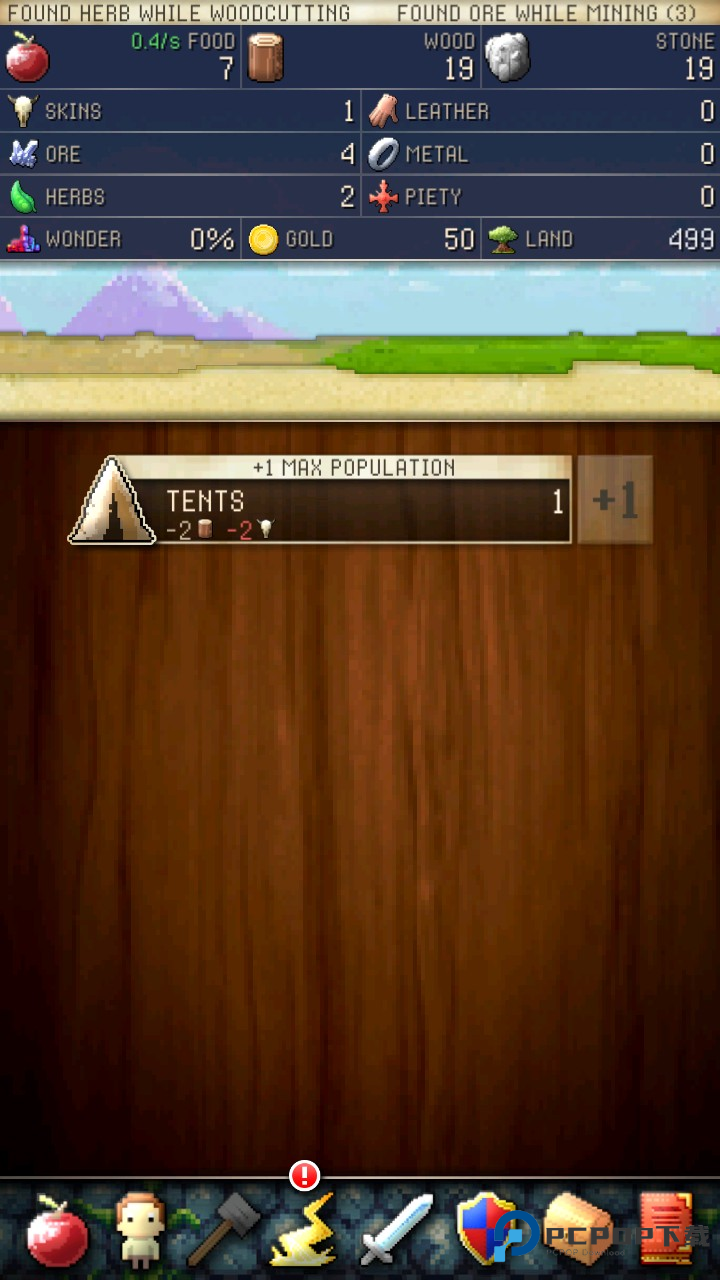 2、收集资源,建造帐篷,招募工人为自己工作;