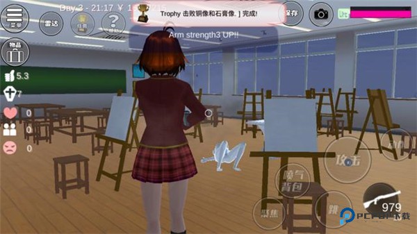 在3楼的美术室里面有一个石膏像,同样的走近就会攻击你,解决完他之后,任务就完成啦