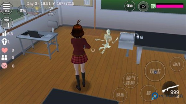 5、在晚上19:00的时候来到学校2楼,在右边的理科室里可以看见一个骷髅架子,我们把它消灭掉