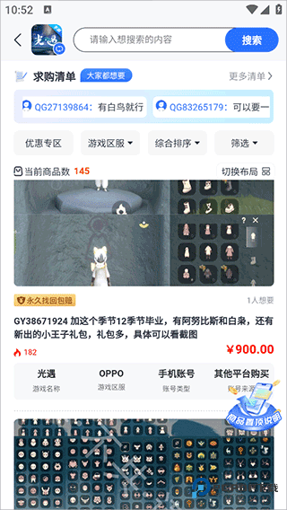 1、支持各种交易服务,涵盖的游戏类型也非常全面。玩家可以根据自己的需要随时进行搜索和查找。