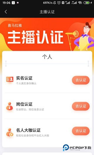4、进入通道后会有身份认证,主播认证等,你需要填写真实信息;