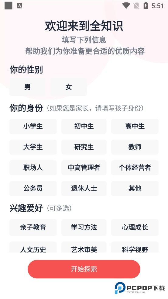 1、进入软件前填写下列信息,系统会为你准备更合适的优质内容。