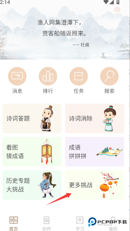 1、在主界面首页的显眼位置找到并点击"更多挑战"按钮,进入扩展活动选择页面。