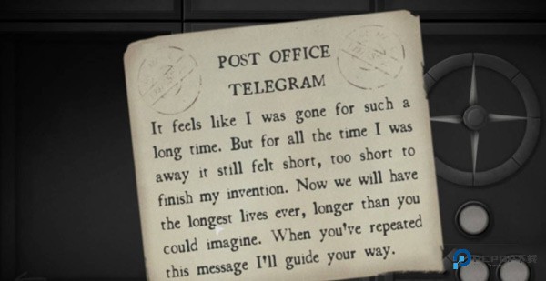 在钟表房中的图案机器,玩家按照鸟、蛇、蝴蝶、人、沙漏、齿轮、铁路、小女孩、蝴蝶、蛇、狼、鸟、蛇、人、齿轮、蛇、鸟、人这个顺序输入后将会获得邮局指针的提示,玩家2可以将该情报用于解谜,解完迷后返回钟表房上面,发现又需要调频了