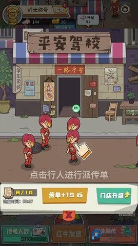10、我们点击店外宣传,点击行人进行派传单,也可以点击传单+15,无需看广告直接可以哦。