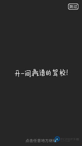 2、来到游戏剧情,游戏讲述的是一个人想去学车,考证,没想到居然被骗了,然后就想着开一家靠谱的驾校,点击屏幕继续哦。