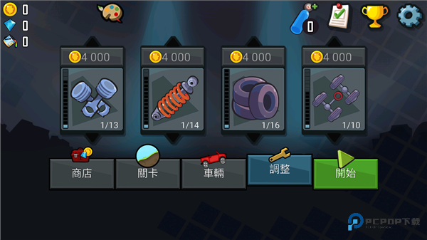 4、登山赛车原版含有多种具有独特升级的车辆。