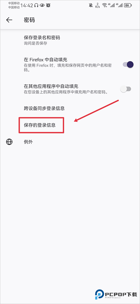 3、进入后首先点击保存的登录信息,接着在保存的登录信息中将你需要的网站、用户名、密码设置完成,例如百度账号