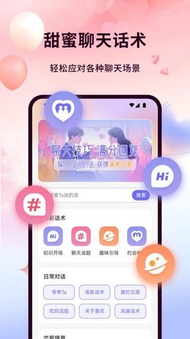 提供的聊天话术与话题适合搭讪,还能应对约会、矛盾化解等多种情境,帮助用户应对各种对话挑战。