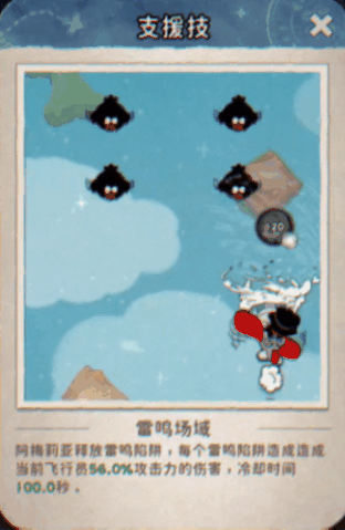 羁绊支援(阿梅莉亚):【雷鸣场域】 - 阿梅莉亚释放雷鸣陷阱,造成艾克攻击力百分比的伤害,为团队提供巨额输出。(冷却时间较长,关键时刻使用!)