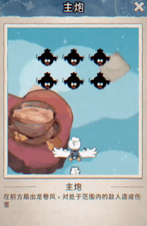 主炮: 在前方扇出强劲的龙卷风,对范围内的敌人造成伤害。