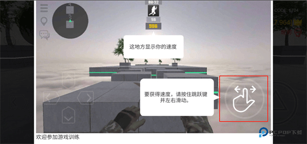 5、要想获得速度就需要按住跳跃按钮并左右滑动来控制视角;