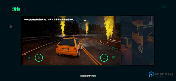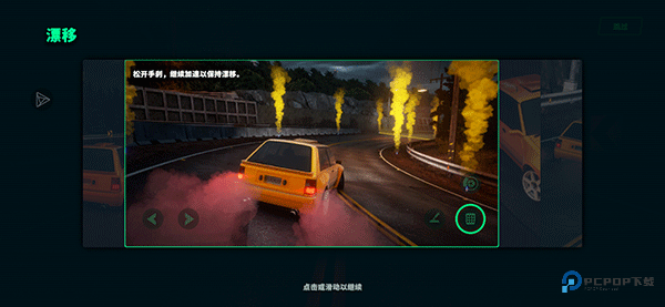 3、当玩家经过玩到时可以在一定速度接近转弯处时,转弯并点击手刹按钮开始漂移
