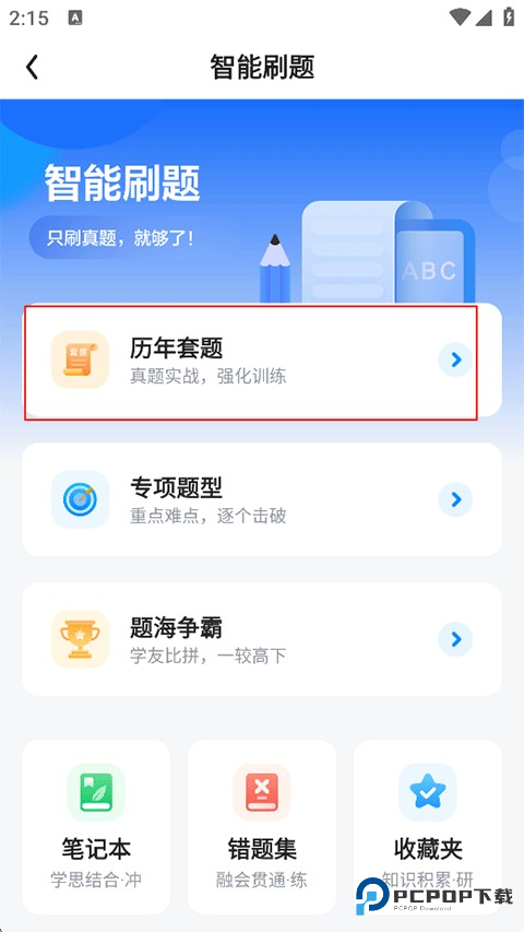 3、返回首页点击智能刷题;