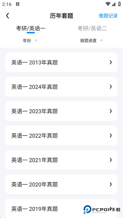 5、进入后点击想要进行练习的真题;