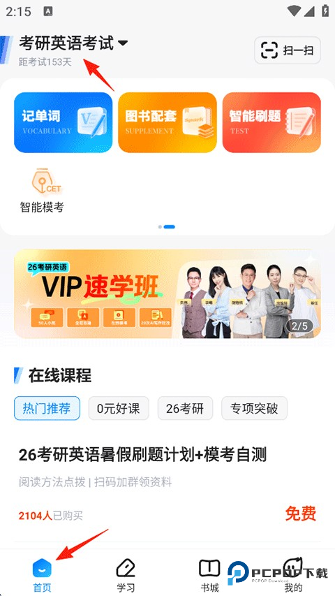 1、打开星火英语APP,点击首页-左上角切换学习考试类型;