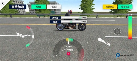 在“直线加速自定义操控”板块中,骑手同样可以对直线加速状态下的按键布局、透明度和大小进行调整。